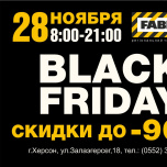 28 ноября 2014 года самый крупный в Херсоне ТРЦ "Fabrika" (который является первым и единственным форматным ТРЦ) проведет первую в истории "Черную пятницу" - свой вариант общеизвестной американской BLACK FRIDAY. В США - это давняя и общепринятая традиция, в последнюю пятницу ноября устраивать грандиозные распродажи. Как правило, этот день служит стартом для больших предновогодних скидок.
